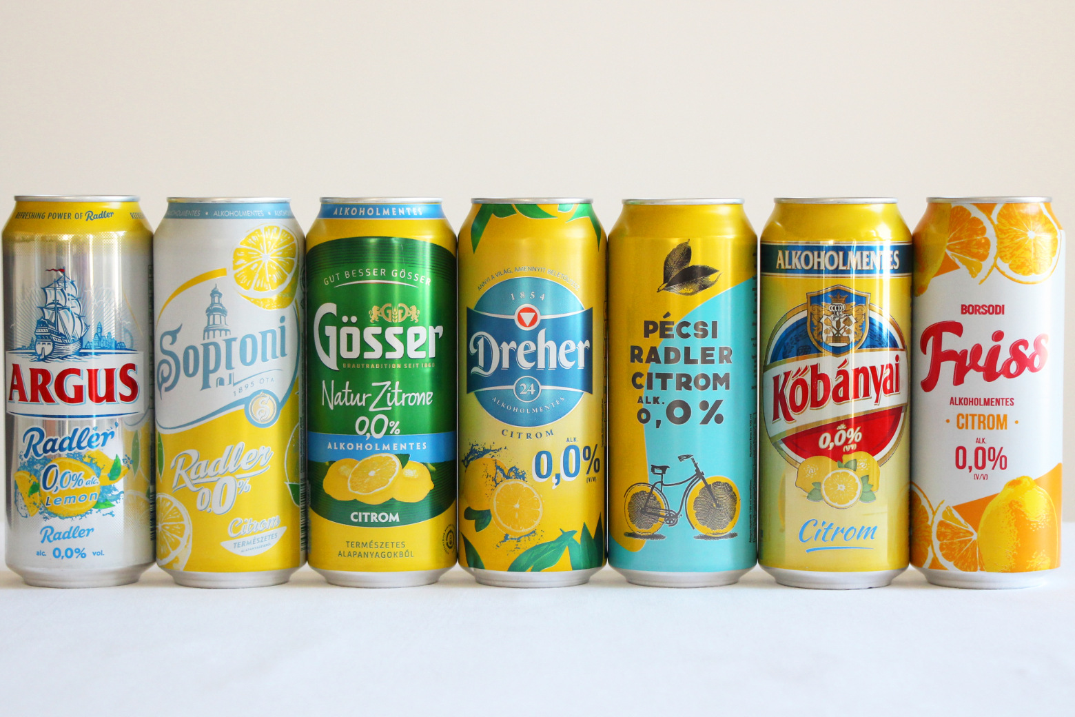 A tesztre az országosan kapható alkoholmentes, citromos ízesítésű radlereket szereztük be.